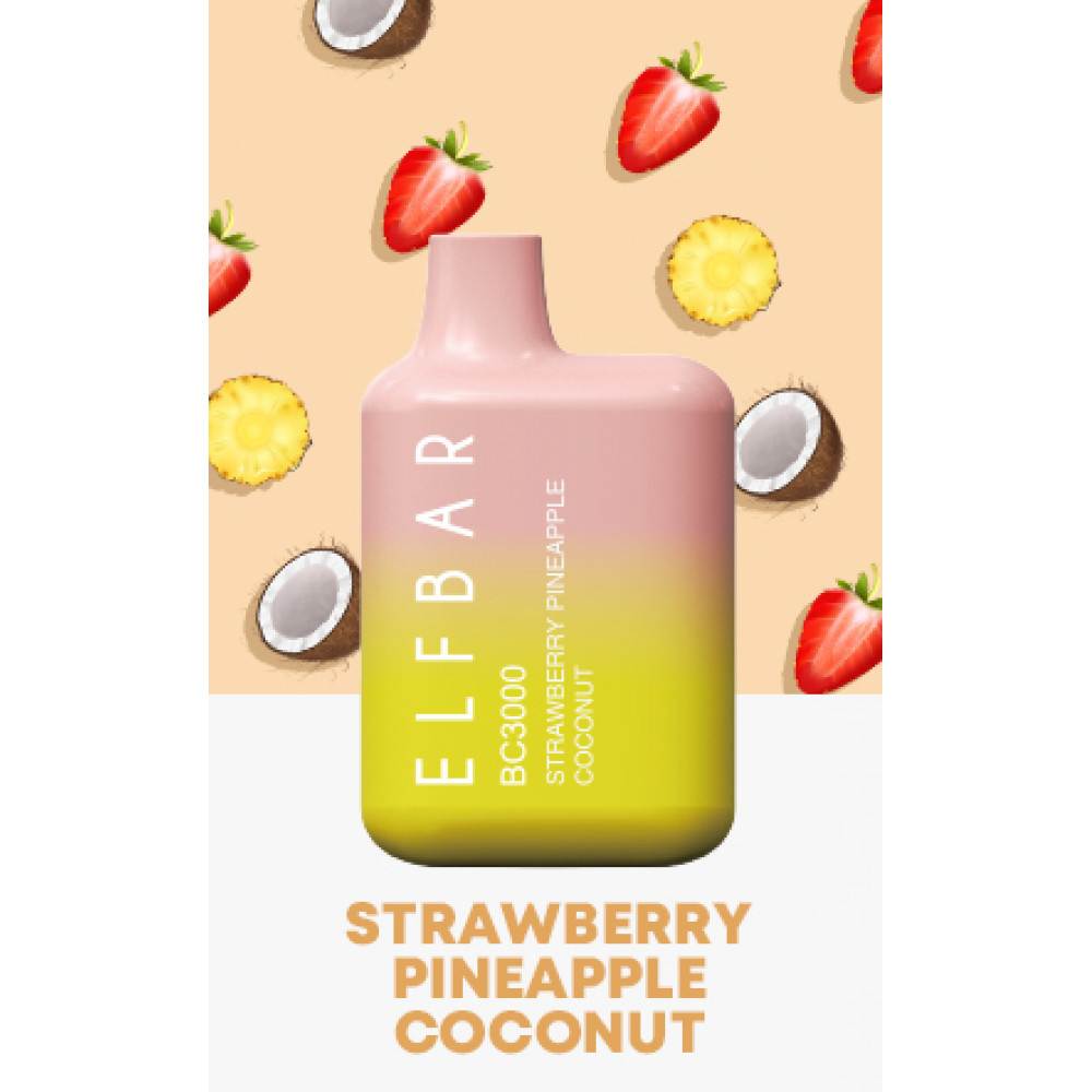 Elf Bar видыBC 3000 Elf Bar вкусыКлубника Ананас Кокос Elf Bar количество в блоке10 шт